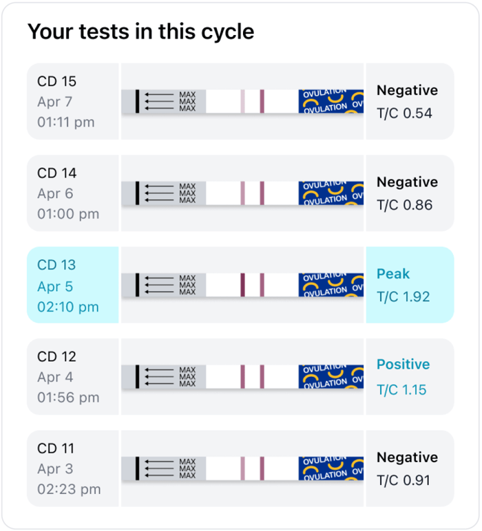 Keep a record of your positive test dates each cycle. This helps you identify your ovulation pattern and predict future fertile windows. Apps can help you track and log your results with photos, making it easier to identify your peak fertile days.
