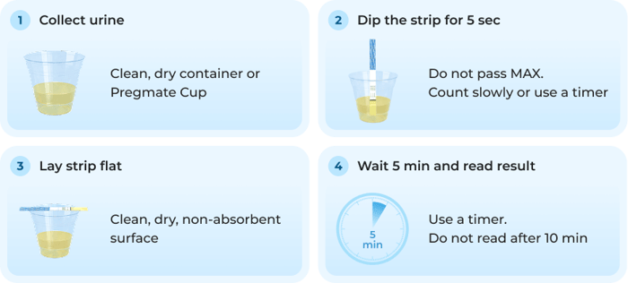 Dip the strip into urine up to the MAX line for 5–10 seconds.